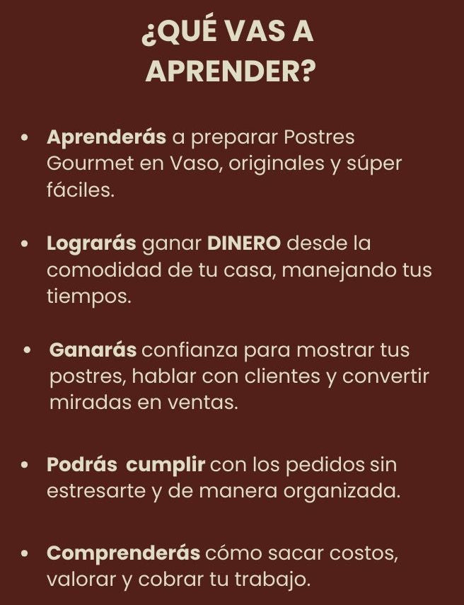 No. El contenido está pensado para personas sin experiencia previa, y también para quienes ya hacen postres pero quieren ordenarse, producir mejor y vender con más seguridad.